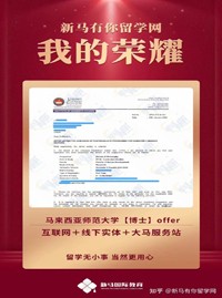 導(dǎo)師優(yōu)勢:馬來西亞研究生部資深顧問,善于挖掘申請人特點(diǎn),快速、準(zhǔn)確制定個(gè)性化留學(xué)申請方案;積累了大量的高端申請成功案例,深受學(xué)生和家長的信賴。